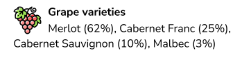 A very successful vintage. The presence of Cabernets and a little Malbec is perhaps not unrelated. The nose combines blackberry with an elegant woodiness evoking praline. In the same aromatic register, the palate offers supple and tasty flesh, carried by silky tannins. What we call a “ pleasure wine”.