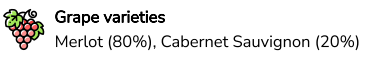 Its ruby red colour still reflects the purple nuances of its youth. Red fruits and wild berries make up the freshness of its bouquet. On the palate, the attack is frank and fruity with notes of cherry typical of Merlot, giving way to tannins melted into the length..