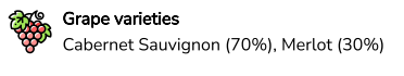 Pretty ruby colour of beautiful intensity with purple reflections. It is shiny and opaque in its density. Surprising nose with its finesse and fruitiness with notes of cherries, blackberries and blackcurrant. Then arrive fresh notes of liquorice and peppermint. The wine has a powerful attack with a square structure and reserved fruitiness. The finish is very embossed with flavours of liquorice and pepper